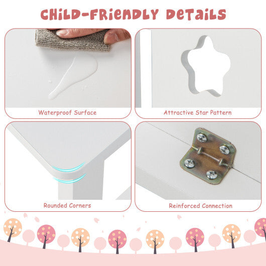 Kids Desk and Chair Set with Hutch and Bulletin Board for 3+ Kids-Pink