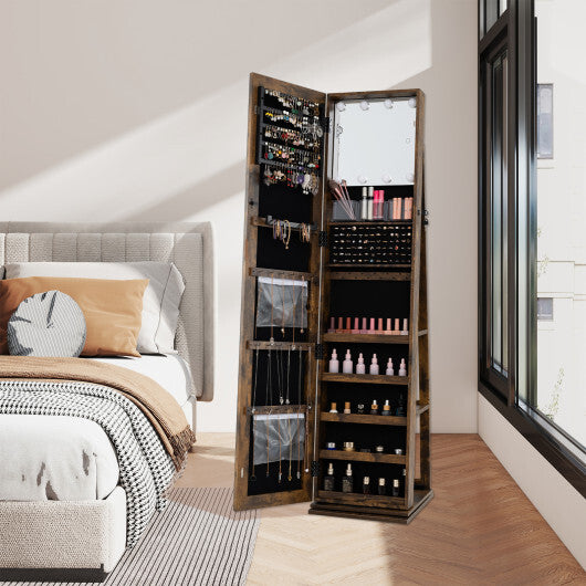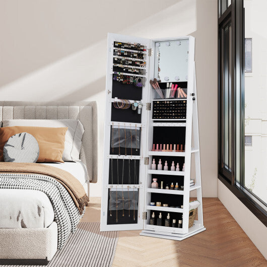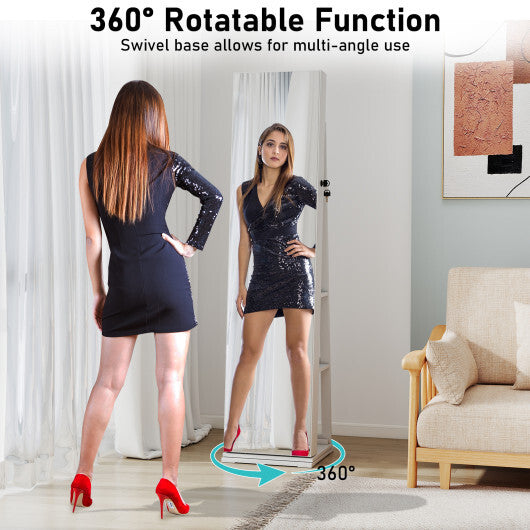 360? Swivel Jewelry Cabinet with Full Length Mirror-White