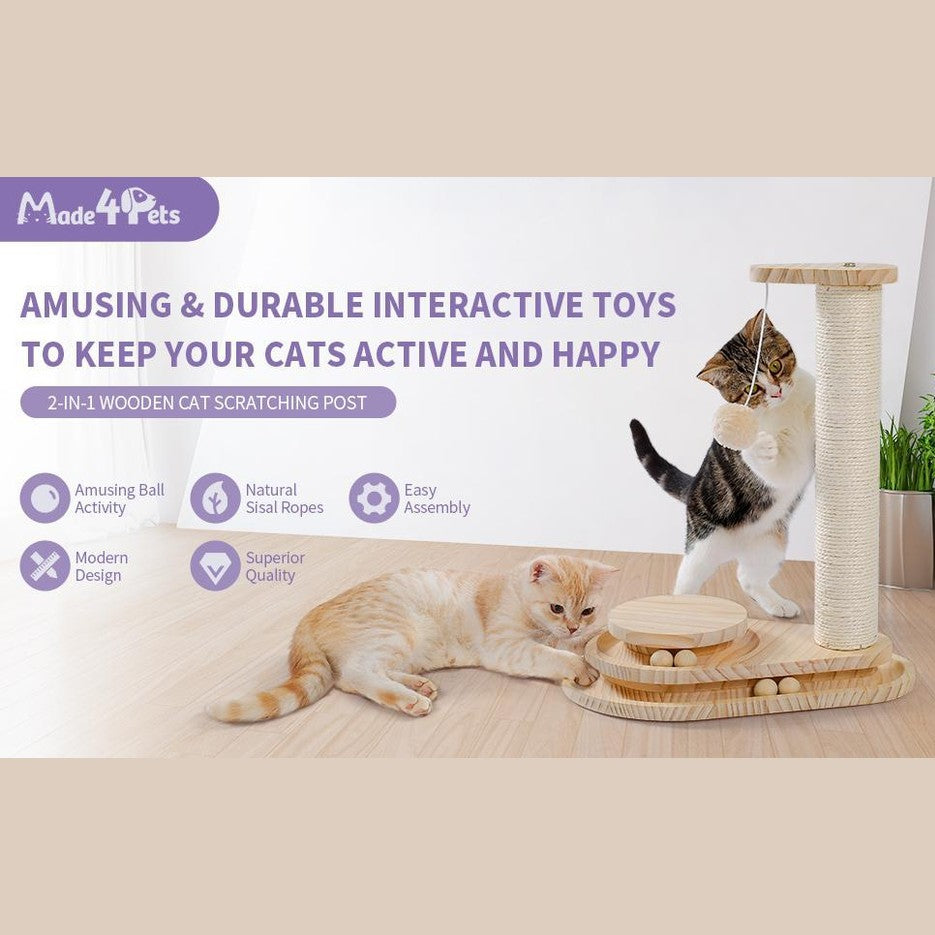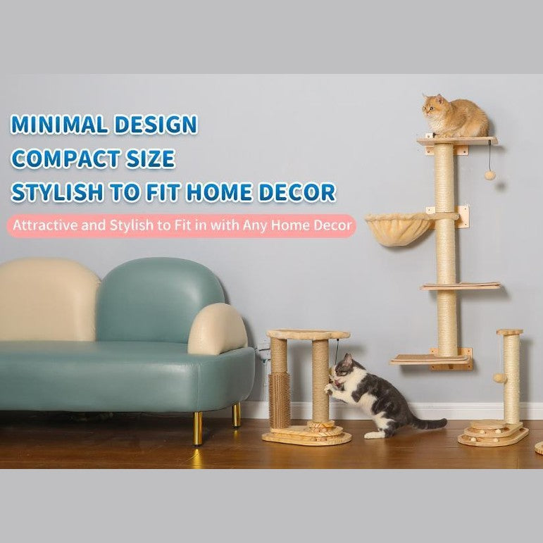 Sturdy Construction & Compact Design: Built from solid wood, the cat scratching posts are odor-free and easy to clean; take only a small space and move easily throughout the house; provide your feline with a heavier, sturdier, and more convenient toy