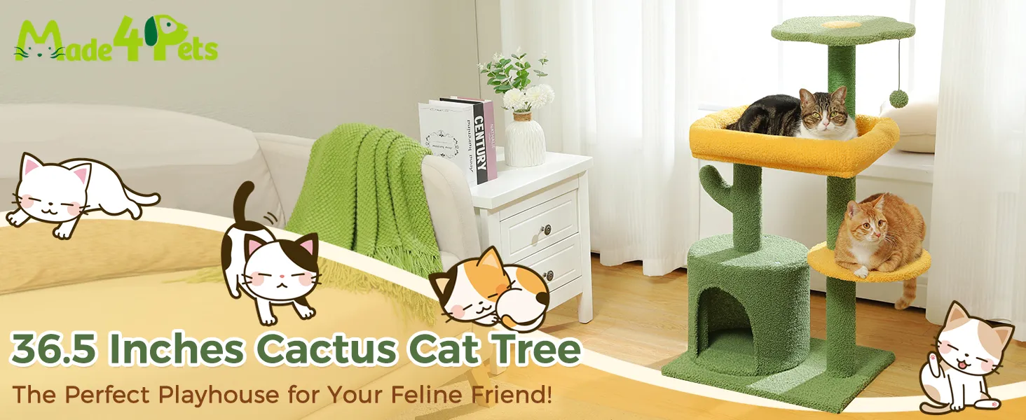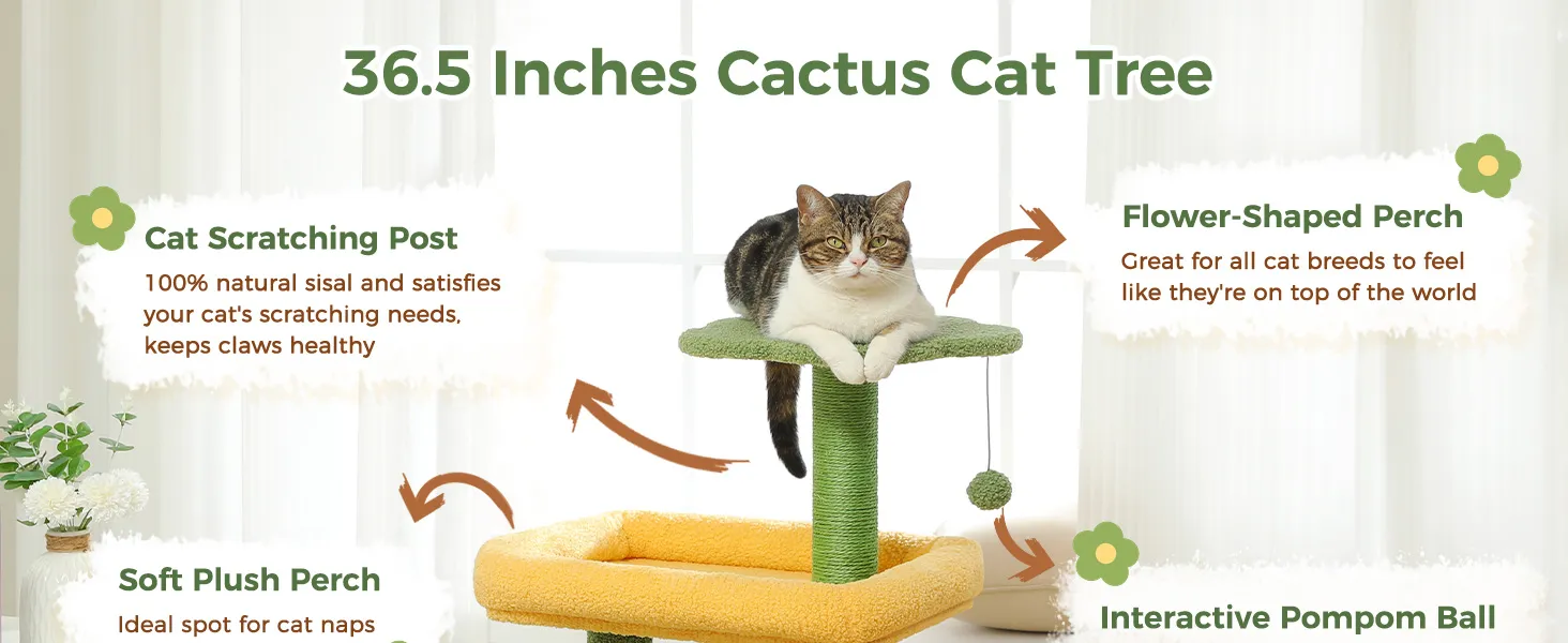 Made4Pets 36.5" Cactus Cat Tree: The Perfect Playhouse for Your Feline Friend!
