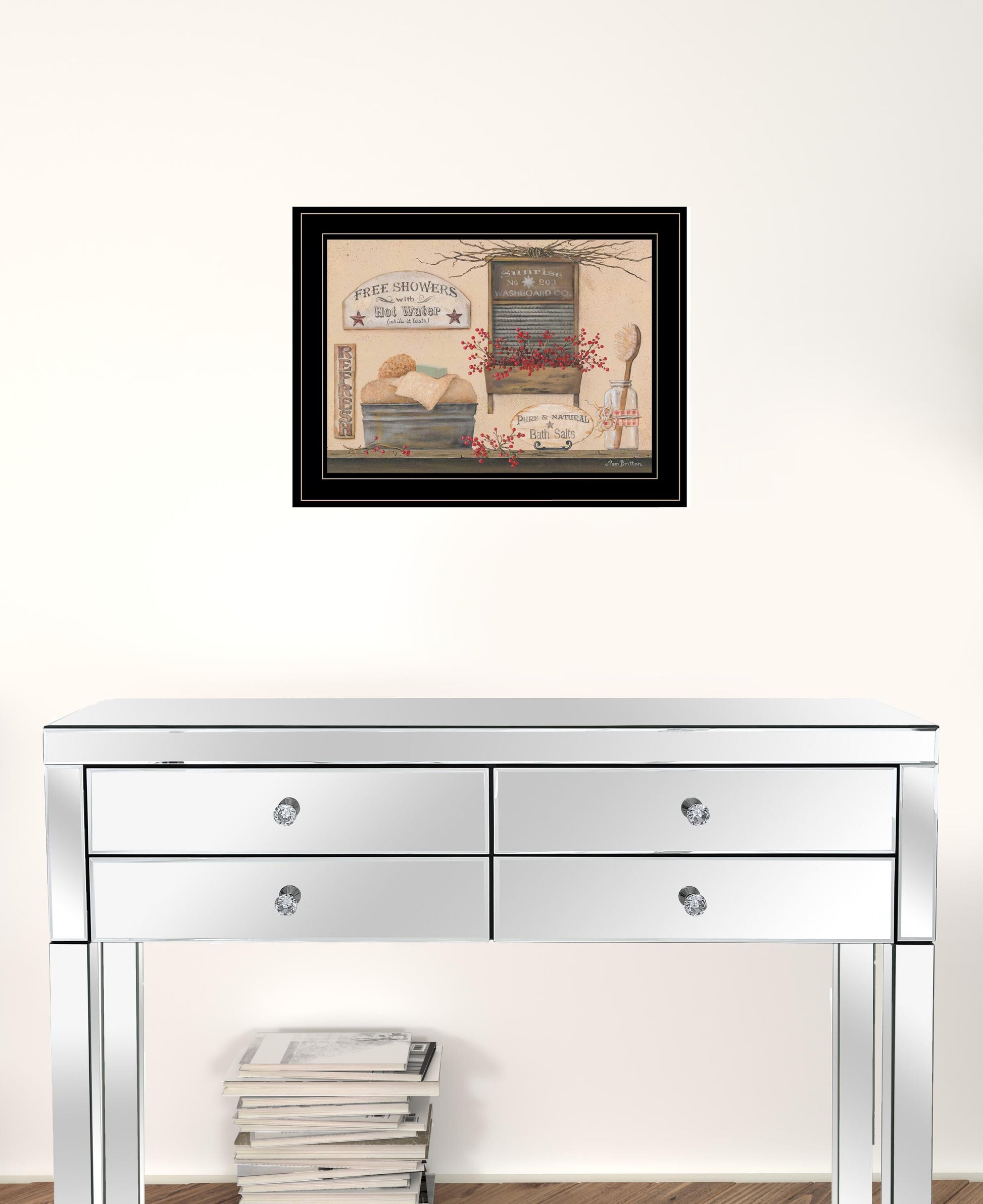 Bring some sizzle to your space with this eye-catching free showers 3 black framed print bathroom wall art. This print is a visual artistic expression that allows you to decorate your space in style. Reproduced for you on paper, this hanging decorative accent will be a trendy and fashionable way to dress your walls. Adding this hanging wall art to your space to make your room feel more finished and attractive. Utilize this opportunity to create a focal point in the room with this fabulous wall decor option. 15-inch H x 19-inch W x 1-inch D