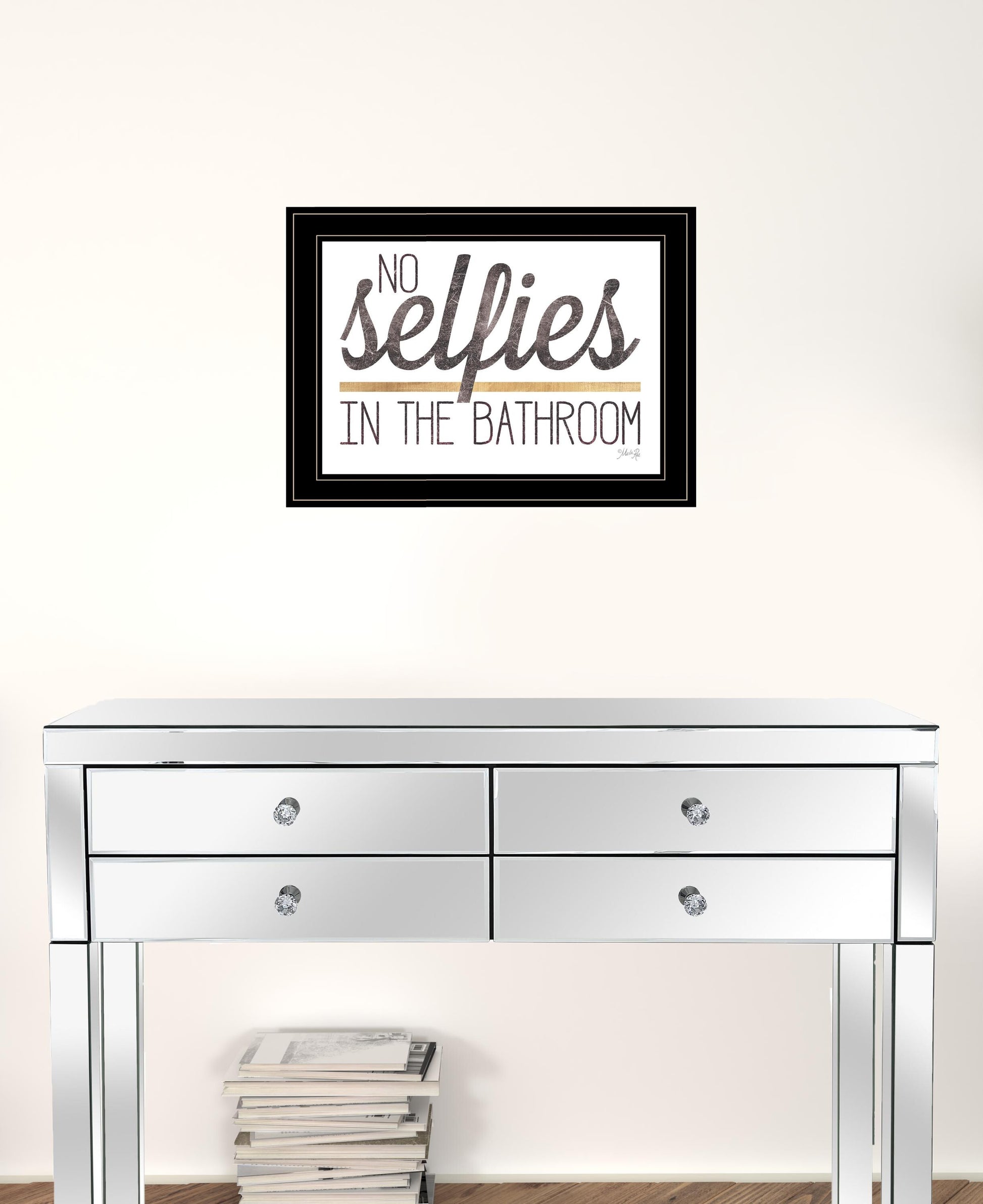 Unique and decorative, this no selfies in the bathroom 6 black framed print bathroom wall art will leave a lasting impression. This print is a visual artistic expression that allows you to decorate your space in style. Reproduced for you on wood, this hanging decorative accent will be a trendy and fashionable way to dress your walls in a rustic and modern farmhouse vibe. Hang on your wall to add some up to date fashion and decoration. Instantly liven up your space with this art that brings color and dimension to your walls. 15-inch H x 21-inch W x 1-inch D