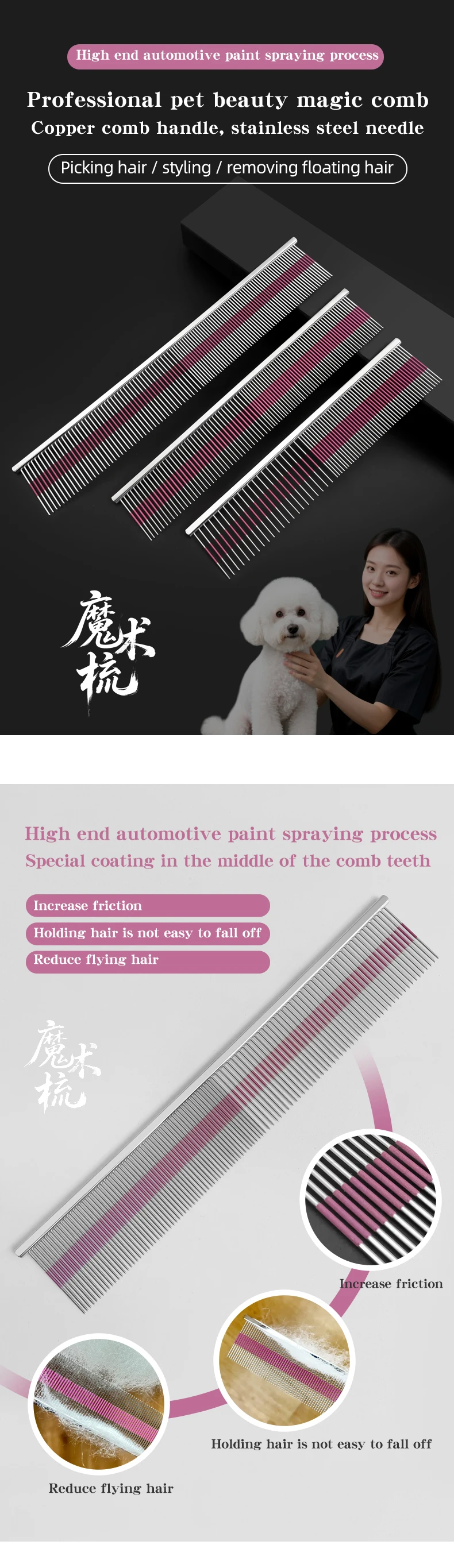 Professional pet grooming magic comb High end car painting process Cat and dog comb Pet Shop Pet School