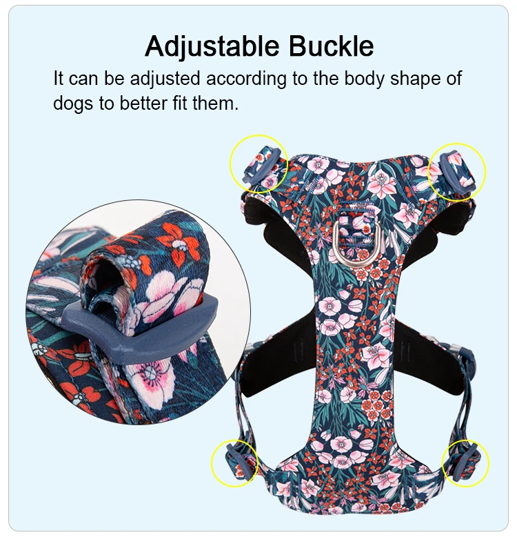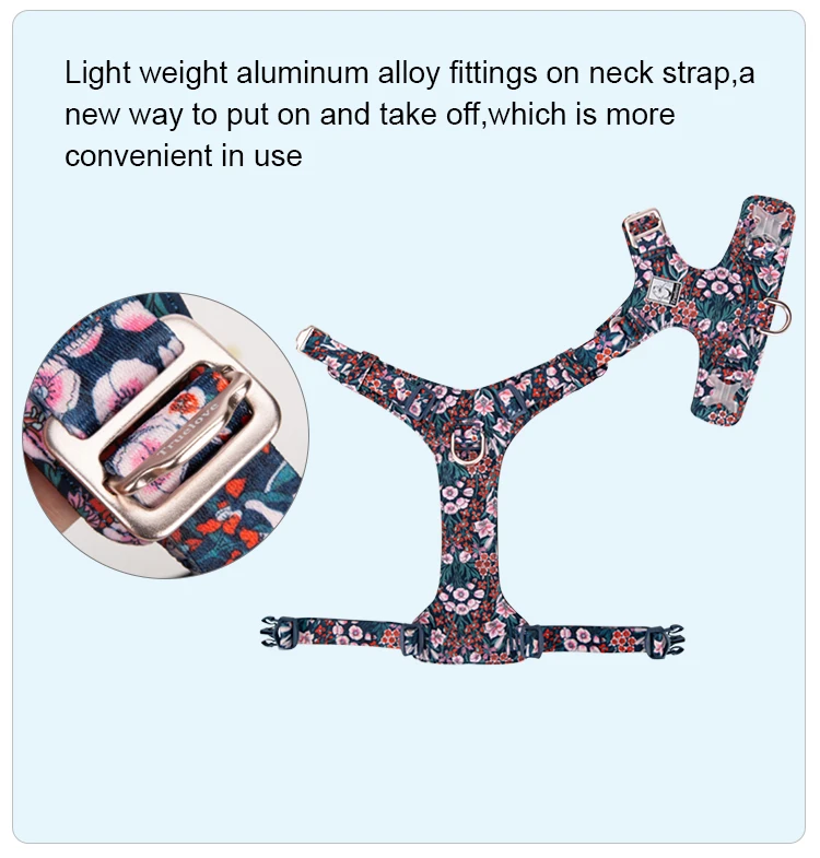 • Lightweight and breathable: Made of 100% cotton fabric and Microfiber Suede Leather lining, the harness is light and breathable for your pet’s comfort.