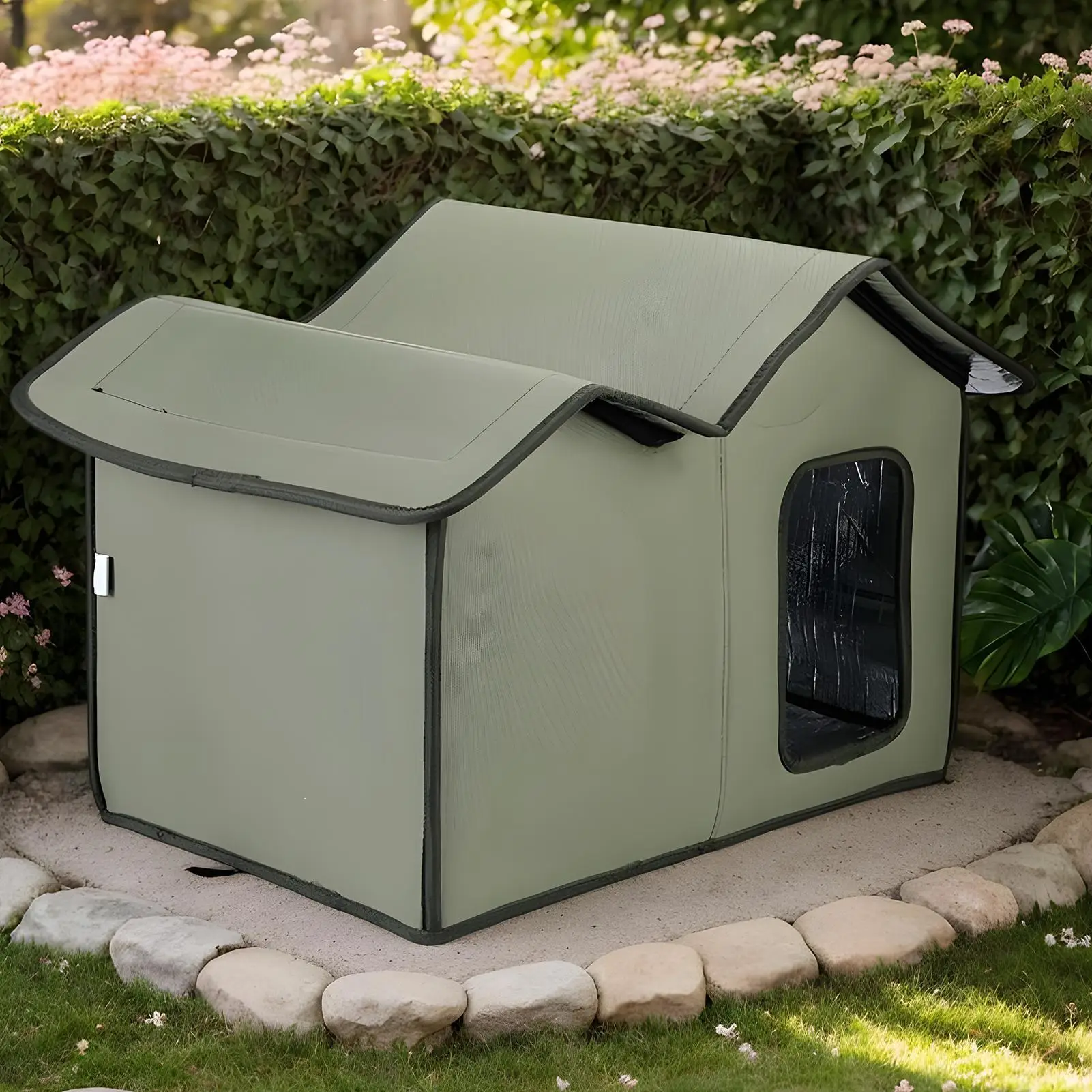 Designed for outdoor resilience, this weatherproof cat house acts as a temporary shelter, perfect for camping or everyday backyard use. Offering versatility, it can be placed on patios, gardens, or balconies, functioning as a wild animals tent bed that supports feline comfort through changing seasons.